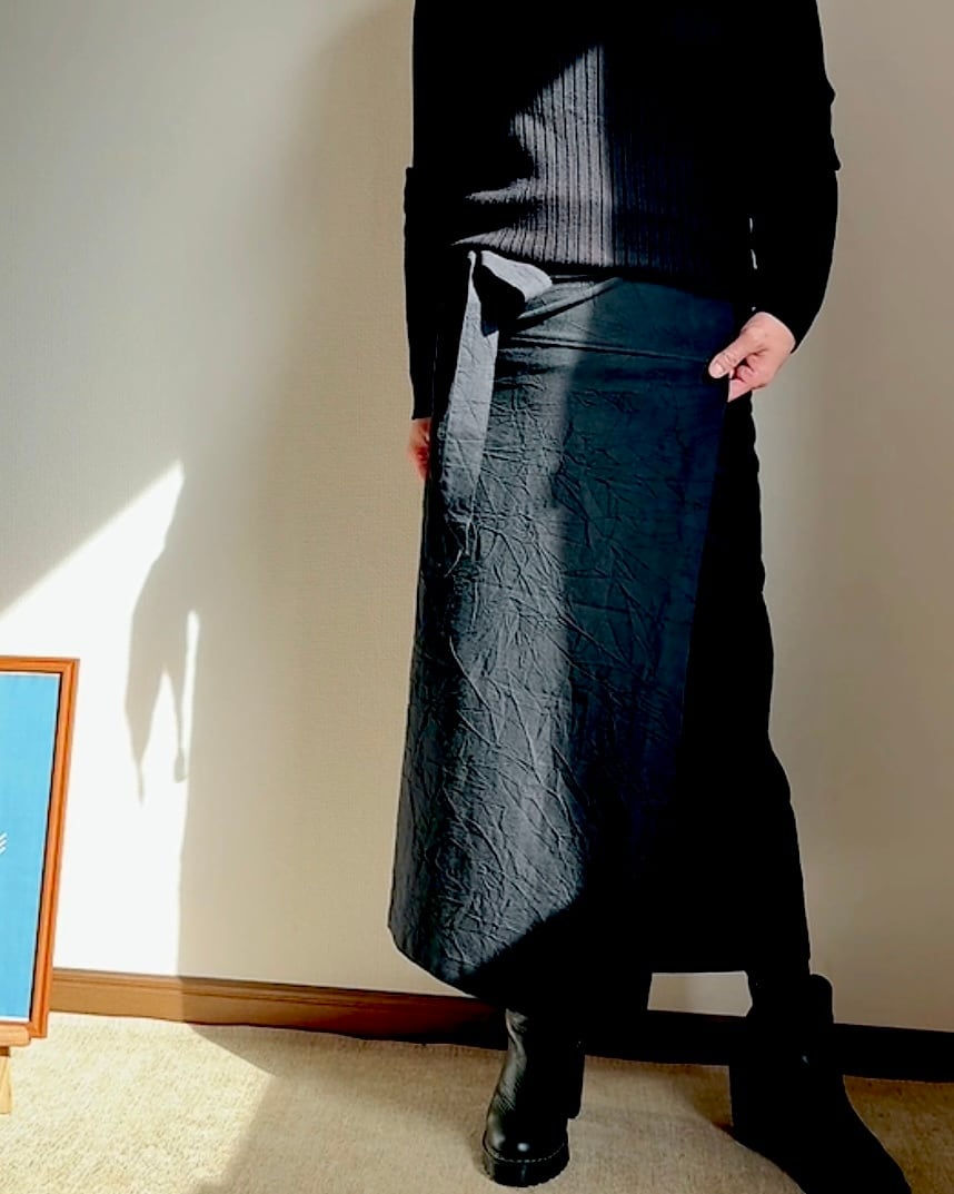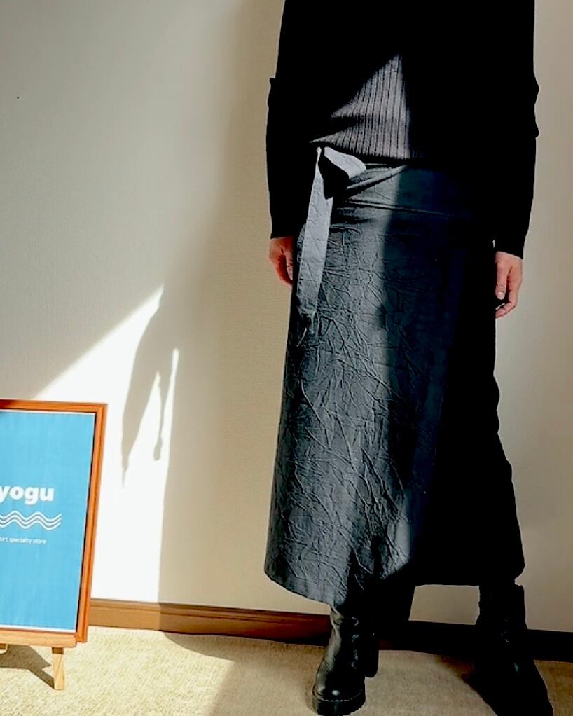 「受注」ブラック単色×しわ加工 亀田縞 サロンスカート