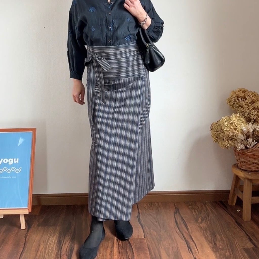 新潟県亀田地区で伝統的に作られてきた綿織物、日本の四季を想起させる柔らかい色合いが特徴的で質感はさっくりとした風合いながらも肌触りの良い生地感です。oyoguサロンスカートはインドネシアの伝統衣装のサロンをヒントにデザインした当店のみのオリジナル商品です。タイトなシルエットでありながらウエストフリーでご自身のサイズに合わせて着用できるストレスフリーなスカートです。ぜひ体感してください。